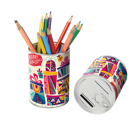 Caja de lápices de metal con cilindro multifuncional con impresión digital para almacenar dinero perfecto regalo de cumpleaños de 12 años